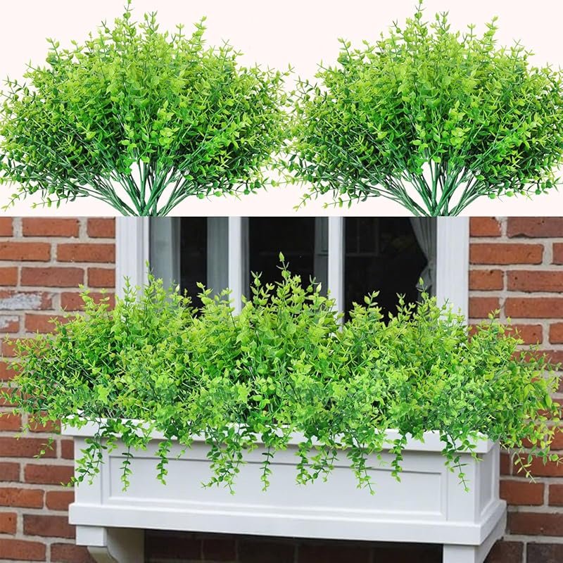 This set includes 10 bundles of artificial boxwood and eucalyptus plants, perfect for adding a touch of greenery to your window desk or outdoor space. These plants are crafted from high-quality materials that ensure durability and a realistic appearance.